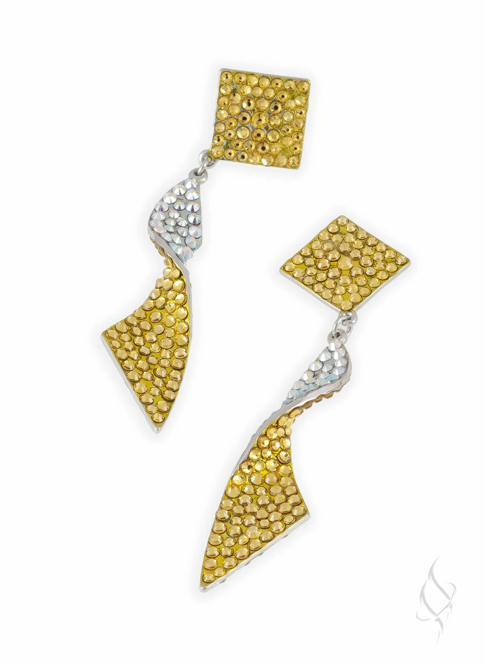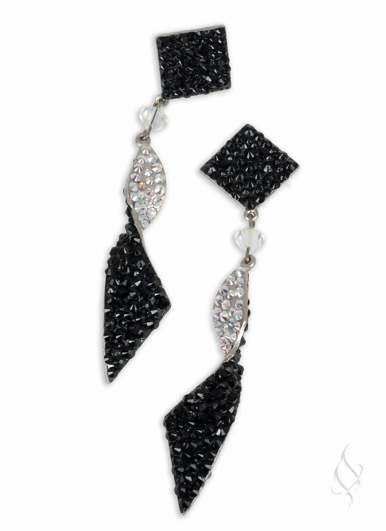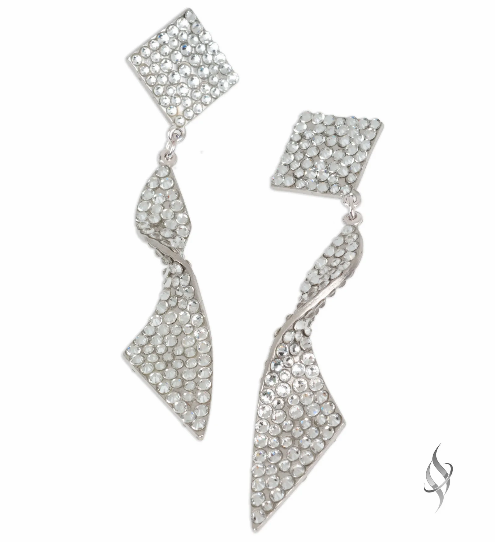 DASCHA, by Stefanie Somers is sparkle with a twist. The earring is 3 5/8″ long, 3 1/2 below the ear and 1/2" wide of hand-set European Crystals. Contrasting shade on the reverse side adds depth to the cool twist, or go with all one shade for a more streamlined look. Available in an array of colors. Allow 4-6 weeks for special orders.