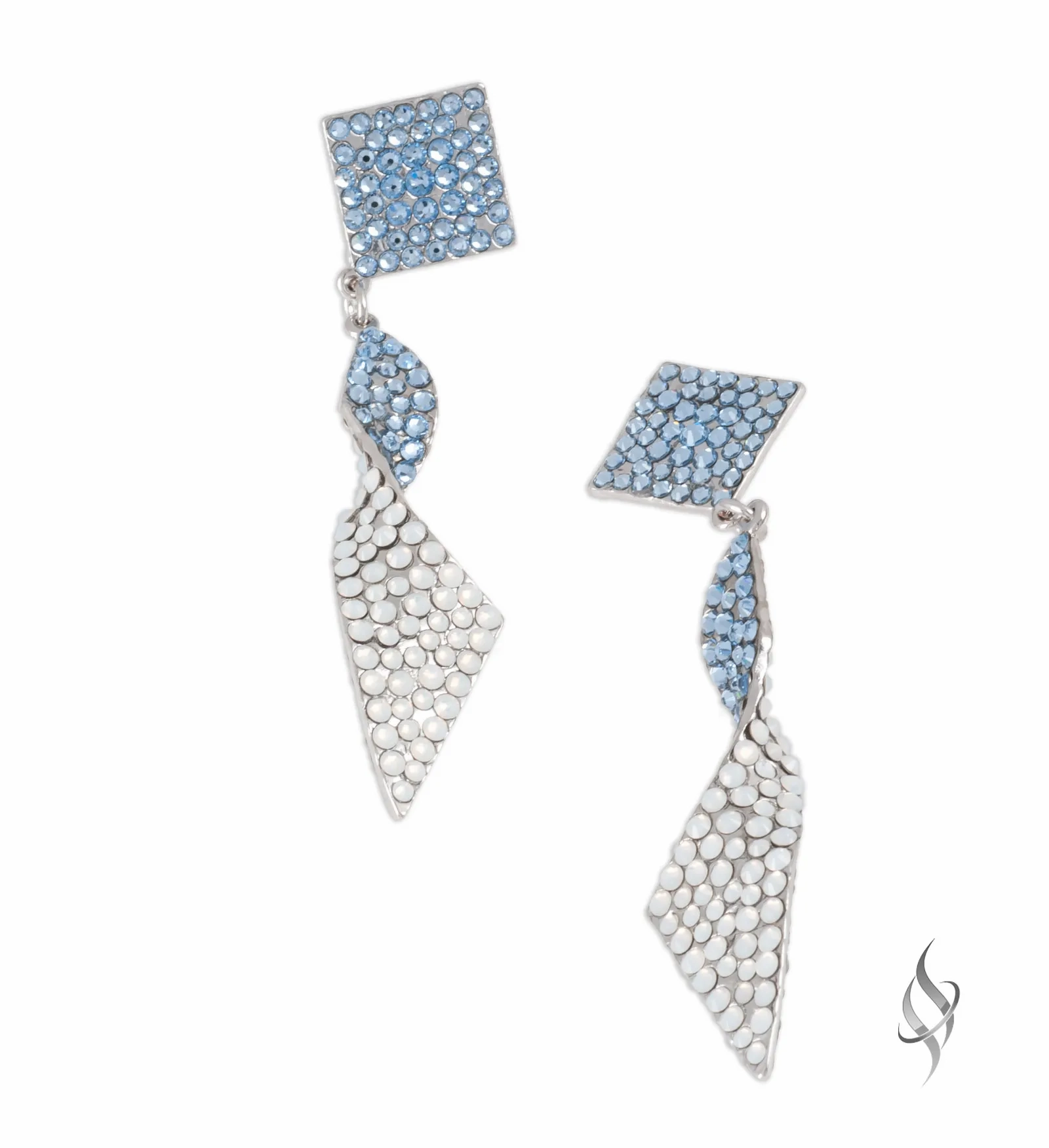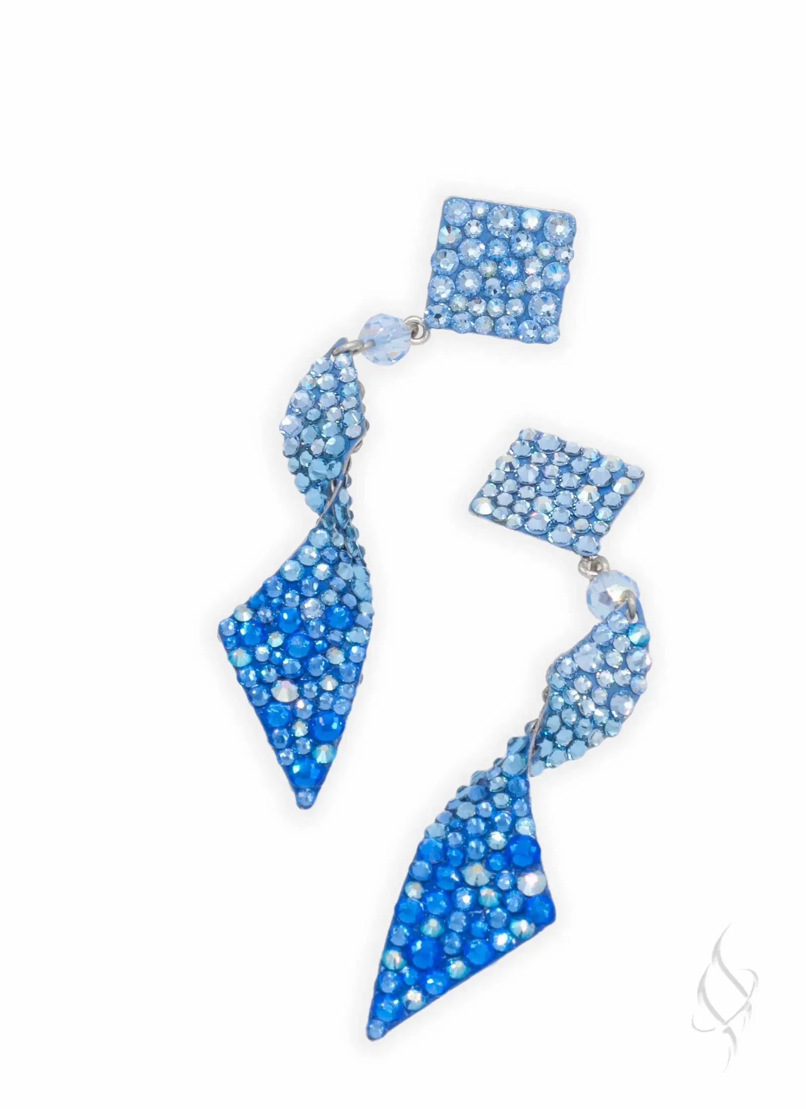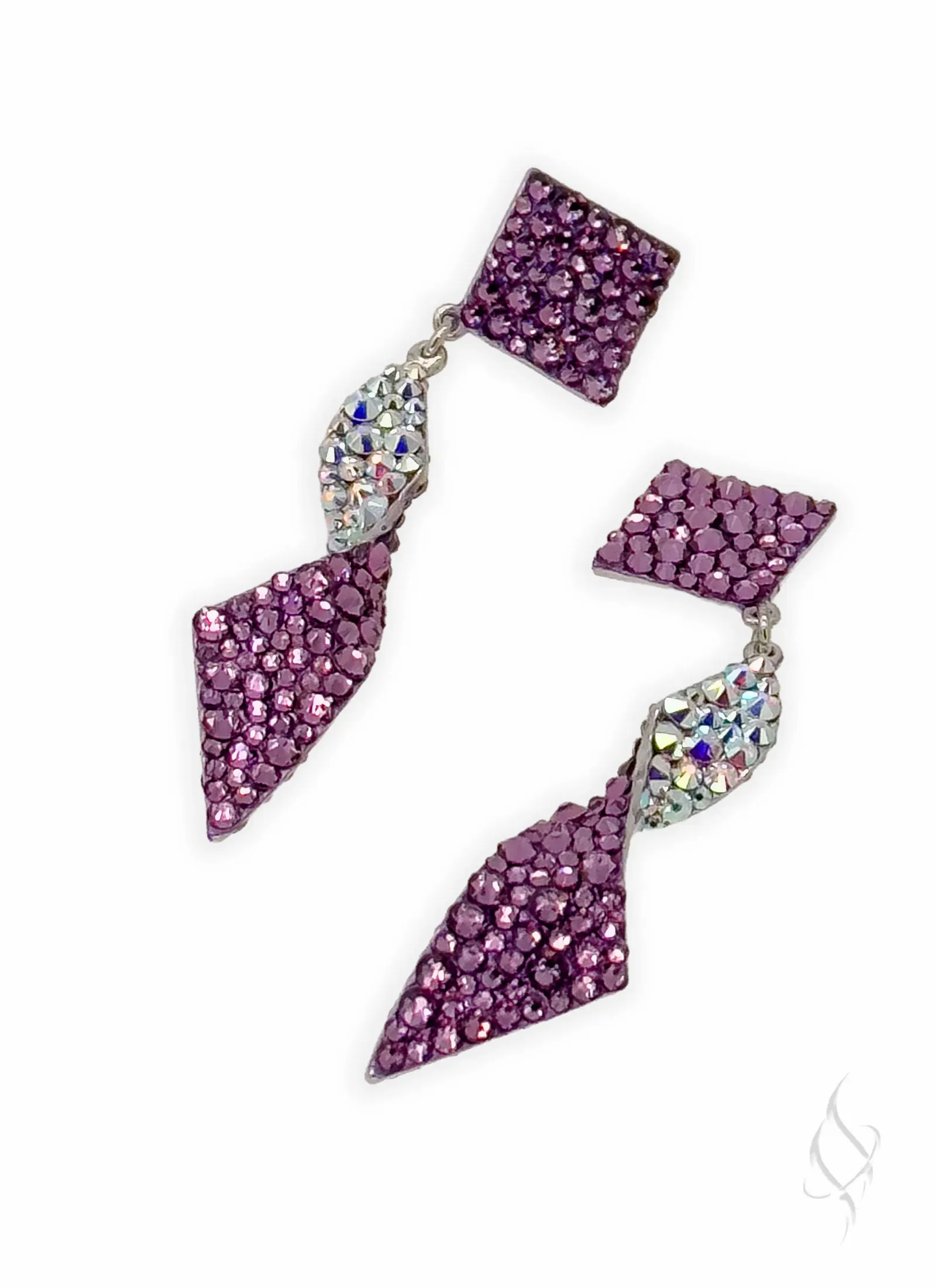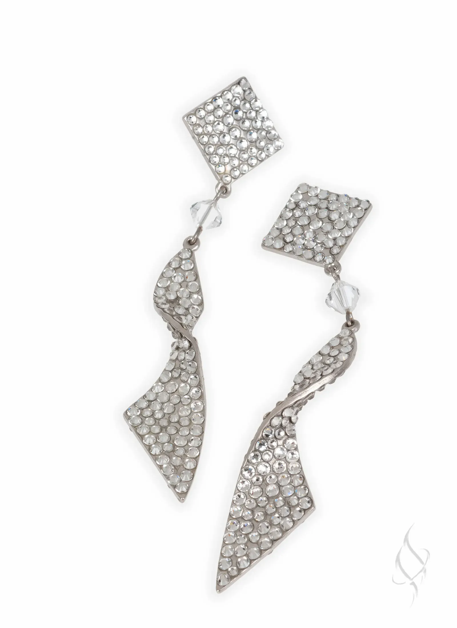 DASCHA, by Stefanie Somers is sparkle with a twist. The earring is 3 5/8″ long, 3 1/2 below the ear and 1/2" wide of hand-set European Crystals. Contrasting shade on the reverse side adds depth to the cool twist, or go with all one shade for a more streamlined look. Available in an array of colors. Allow 4-6 weeks for special orders.